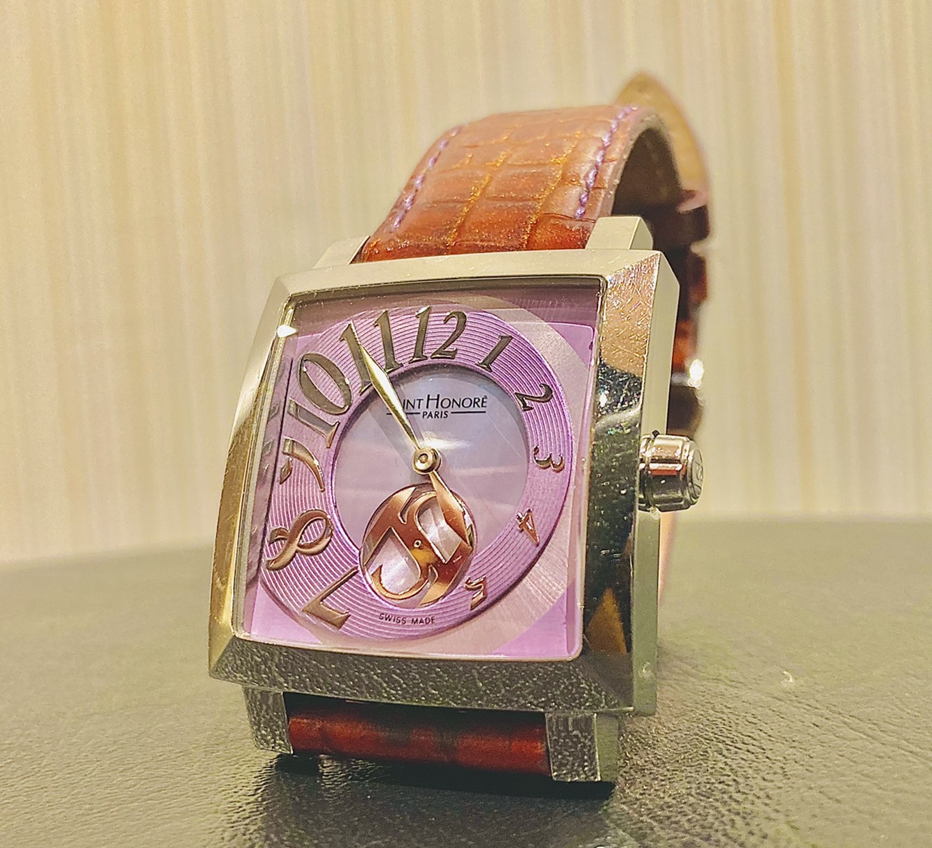シェル文字盤が素敵な時計です。