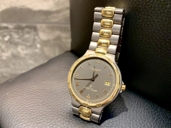 今回こちらのロンジンのお時計のベルトのバックル部分のお修理をさせていただきました。