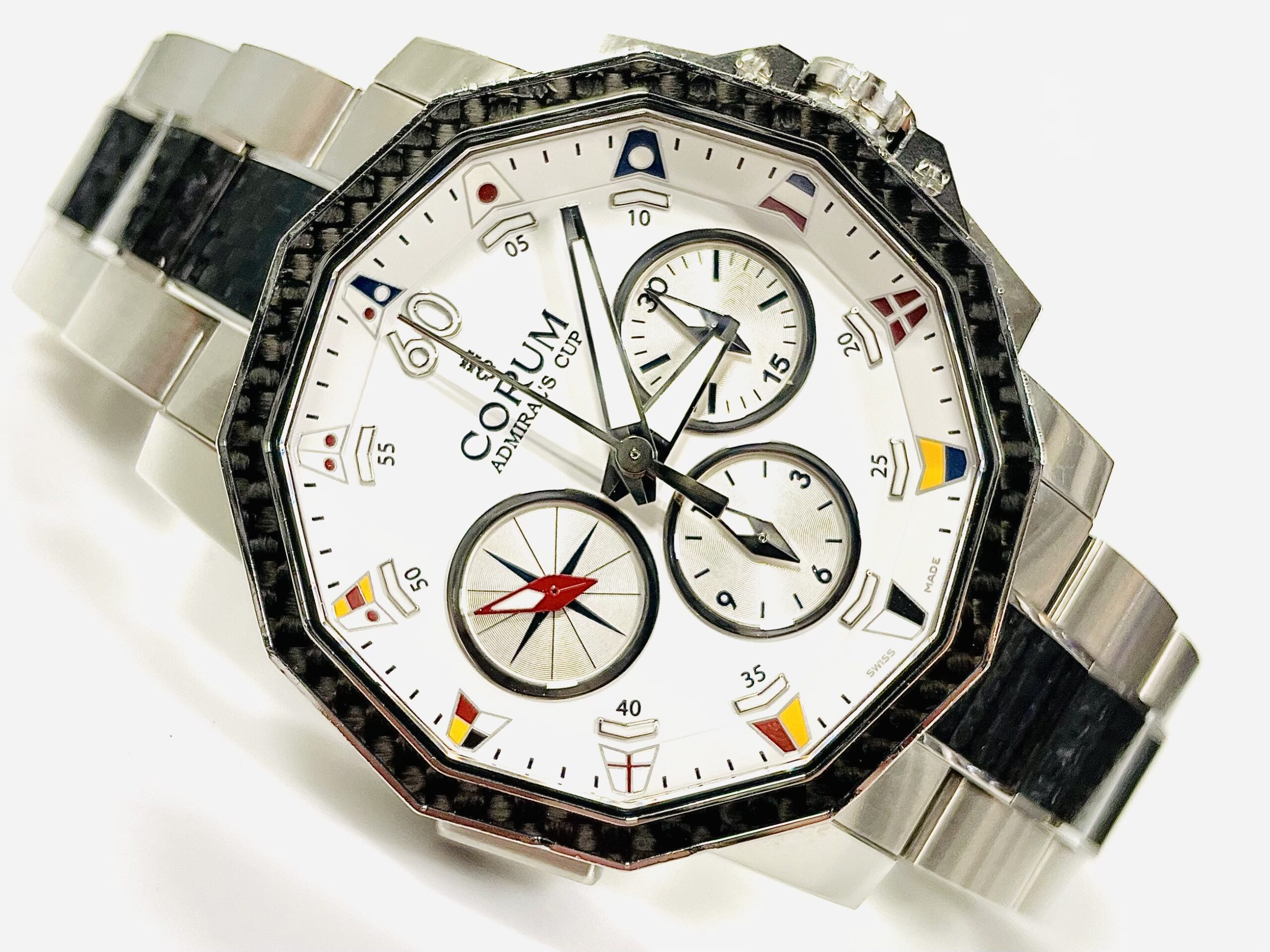 こちらのコルムのお時計の電池交換を承りました。