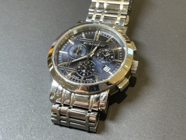 バーバリーの特徴であるチェック模様が文字盤とベルトに表現されたとても素敵な時計です。