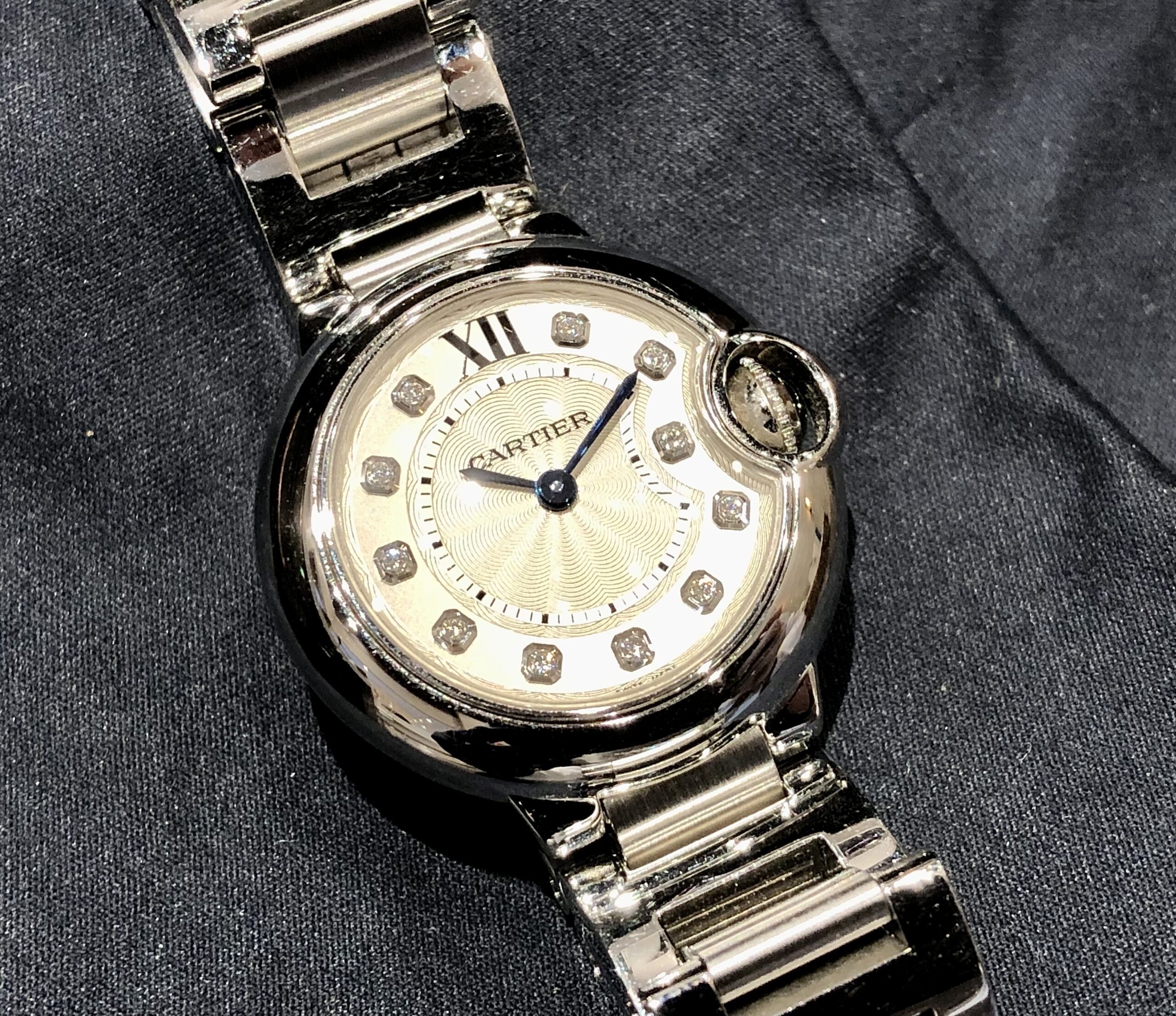 今回カルティエのお時計の電池交換とバンドクリーニングを致しました。
