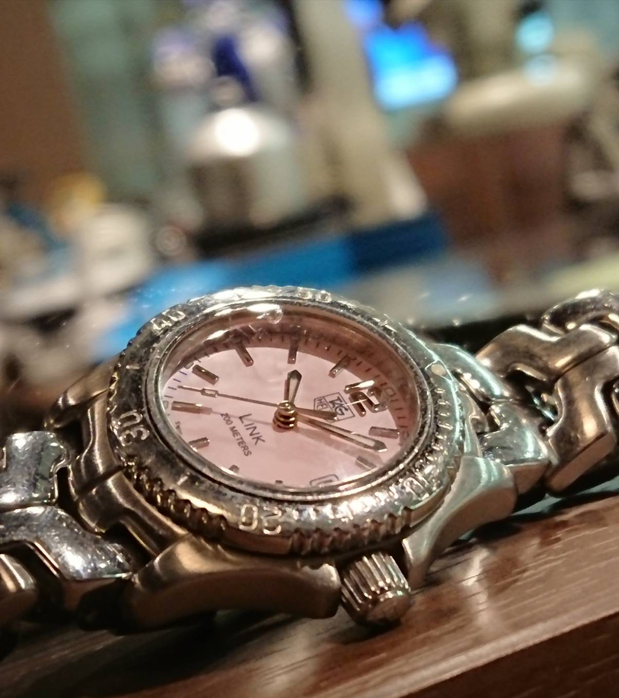 キラキラのダイヤモンドがラグジュアリー感を醸し出す素敵な腕時計。 20年前の還暦のお祝いに、ご家族からプレゼントされたとの事、大切なメモリアル腕時計です。