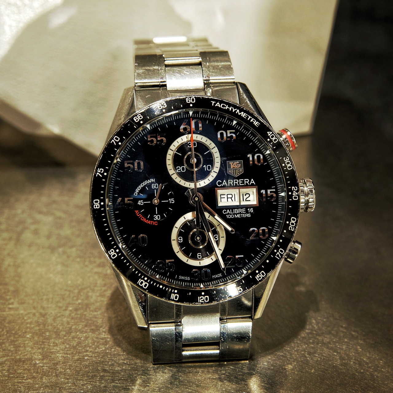 タグ・ホイヤー カレラ キャリーバー16 のオーバーホールを行いました。 カレラの名はメキシコで行われていたレースに由来します。 ケース径は43mmと大きく、視認性も高く機能とデザインを両立させた魅力的な時計です!