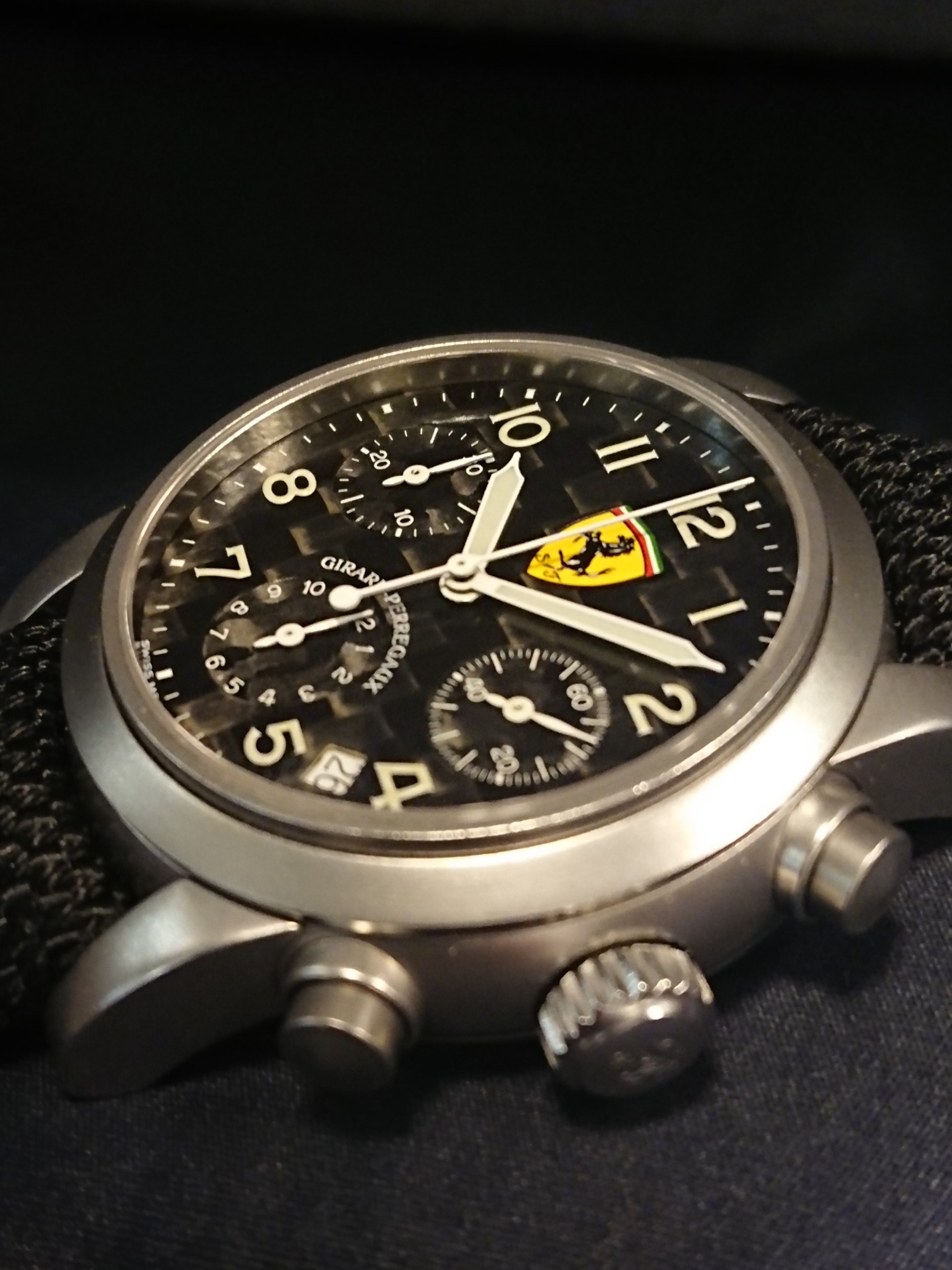 ジラールペルゴと言えば、1856年設立の老舗高級ブランド。 日本史上初の舶来時計の販売をスタートさせた際のブランドとしても有名なエピソードでしょう。1992年には名門自動車メーカー・フェラーリとブランドライセンス契約を締結し、この度のモデルもそのダブルネーム・モデルとなっております。