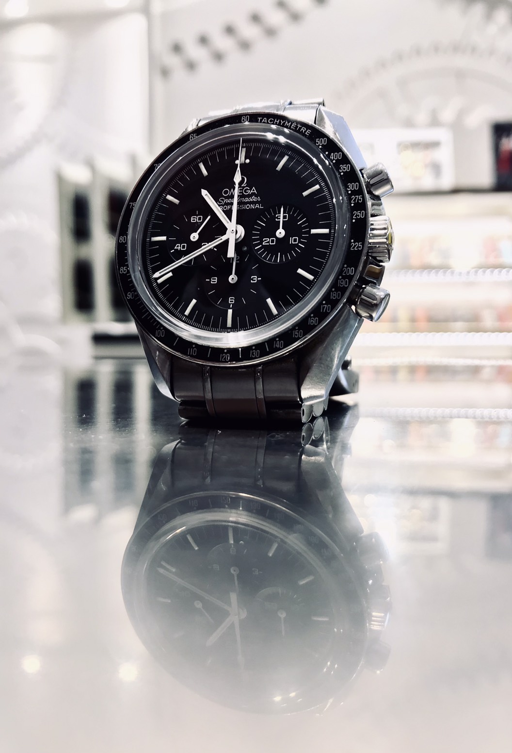 長くご愛用されているオメガ スピードマスターの時計をメンテナンスでお持ち込みいただきました。 オメガのスピードマスターは、NASAの過酷な試験も通過し、人類が初めて月面着陸した際に使用されていた時計で、歴史とロマンを感じさせるモデルですね。
