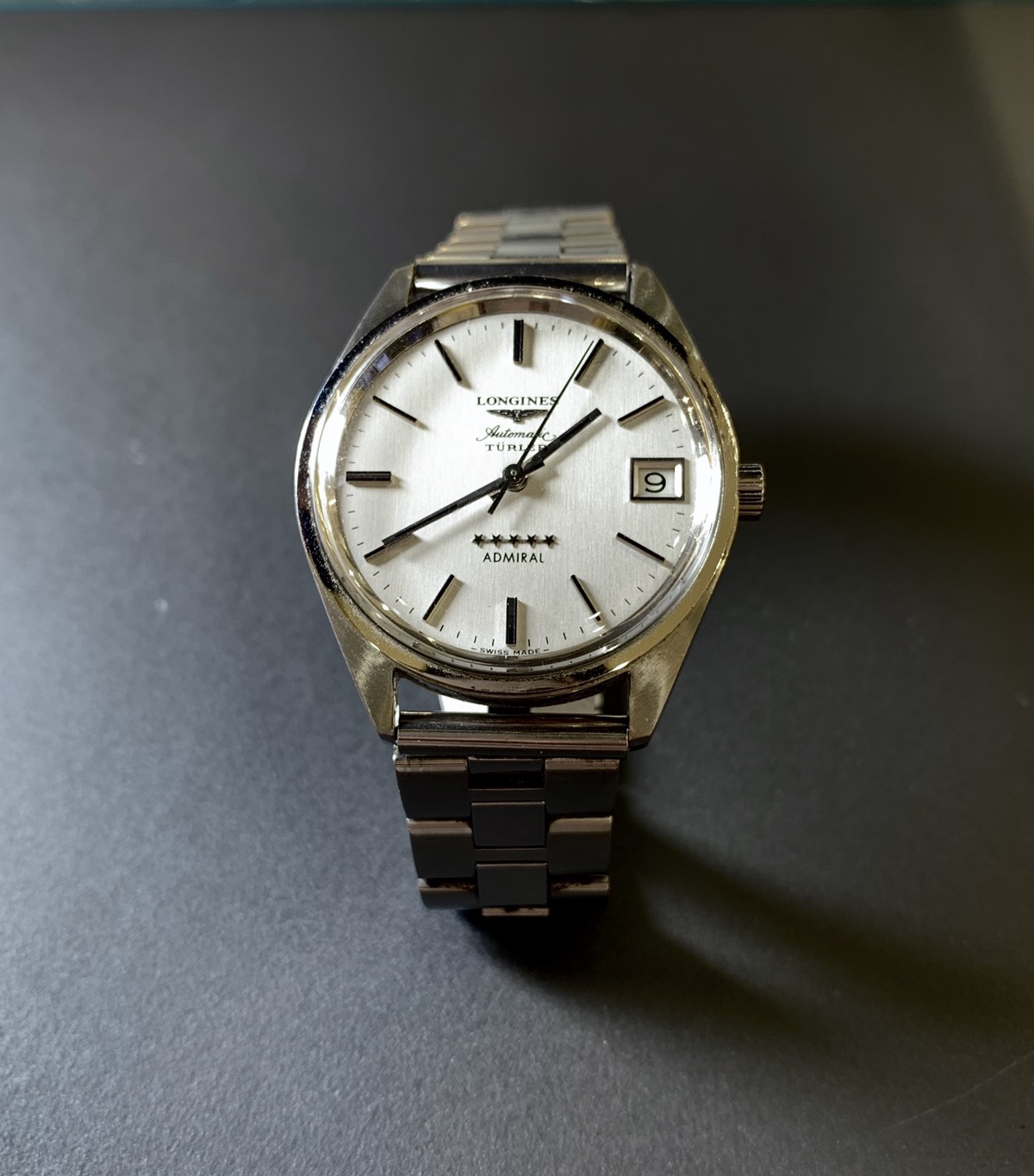 ロンジンのアドミラル ファイブスターをお預かりしました。 ちょうどいいサイズ感と、飽きの来ないデザインが素敵な時計です。