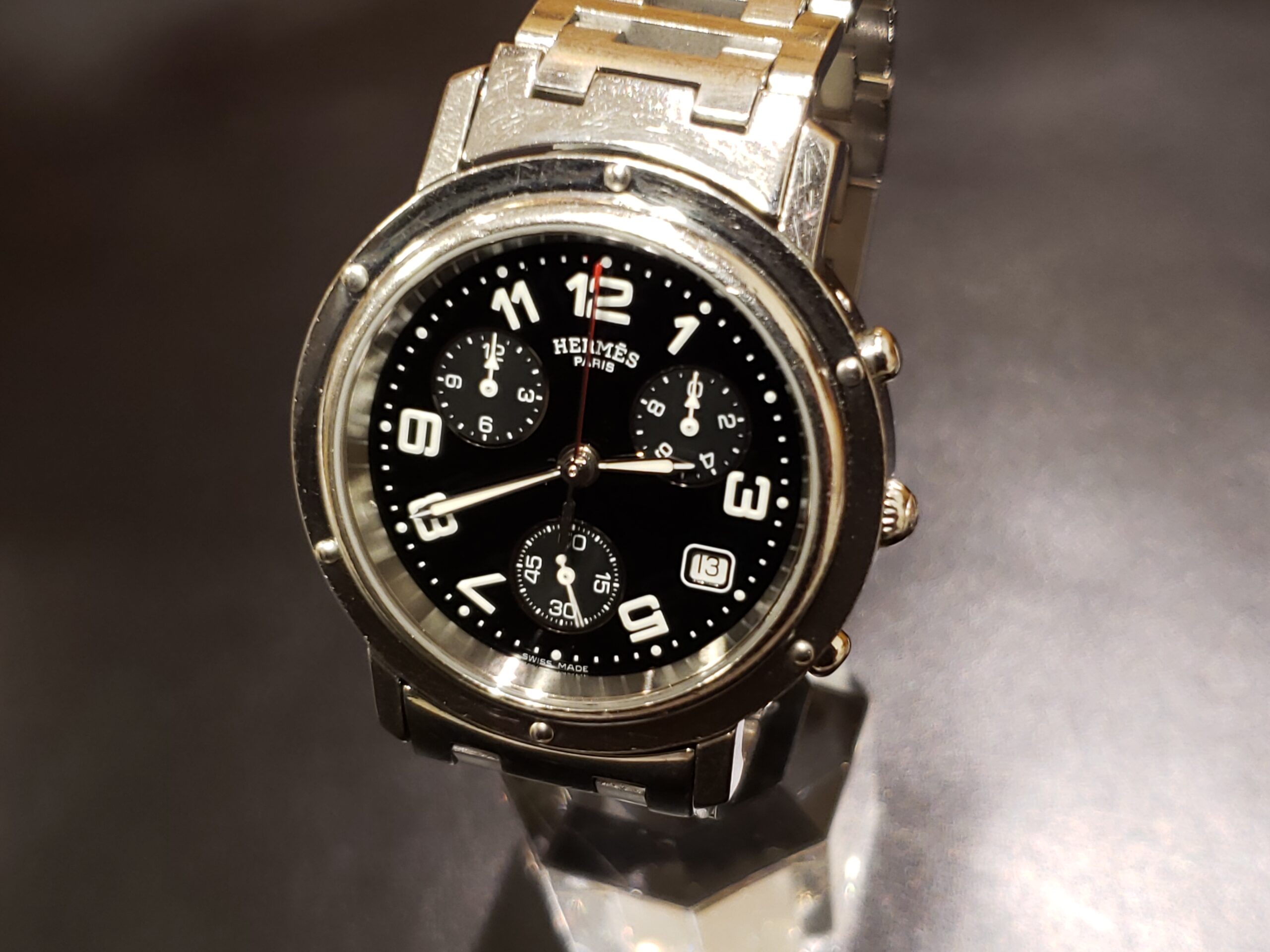 エルメス クリッパーでございます。 電池交換と同時にベルトのクリーニングも承りました。
