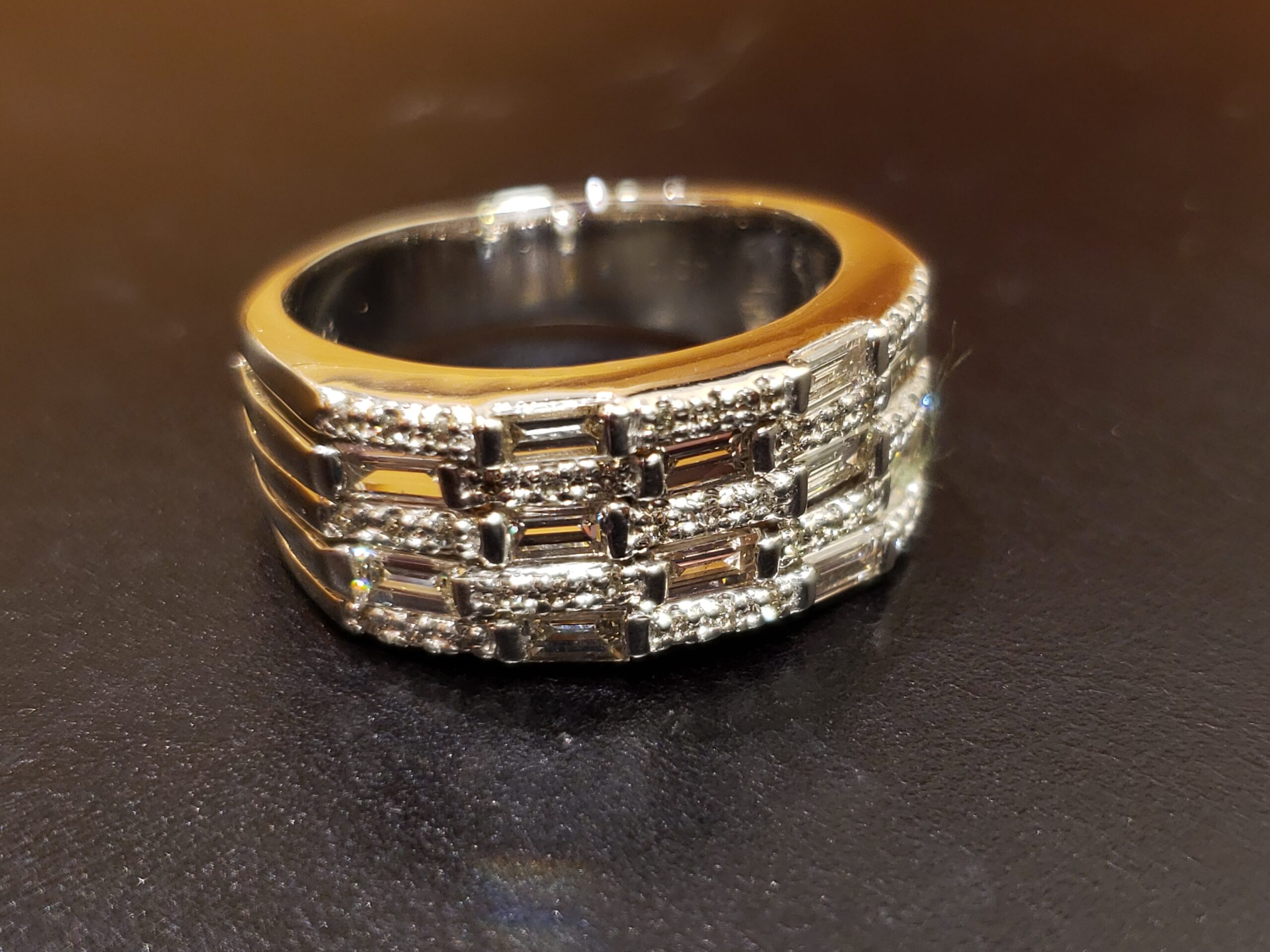 リングの歪み直しでございます。 リングが歪んでしまった場合、サイズが変動してしまいます。サイズ直しも同時にさせていただきました。