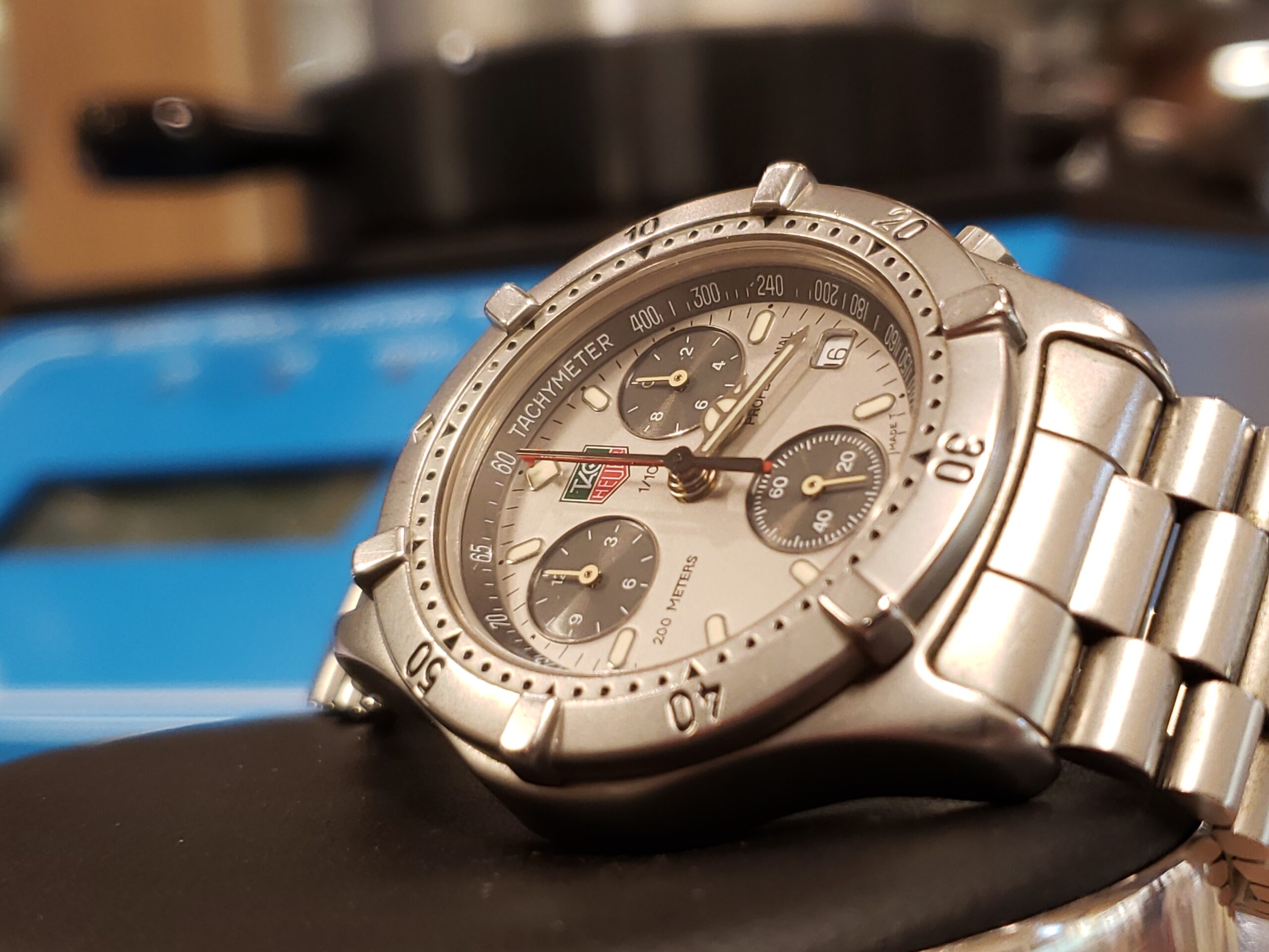 タグ・ホイヤーでございます。 電池交換と同時に防水テストも承りました。