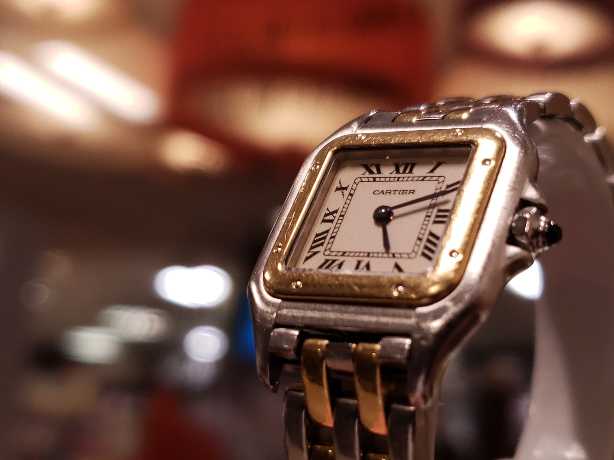 カルティエ サントスでございます。 電池切れのためお持ち込み頂きました。