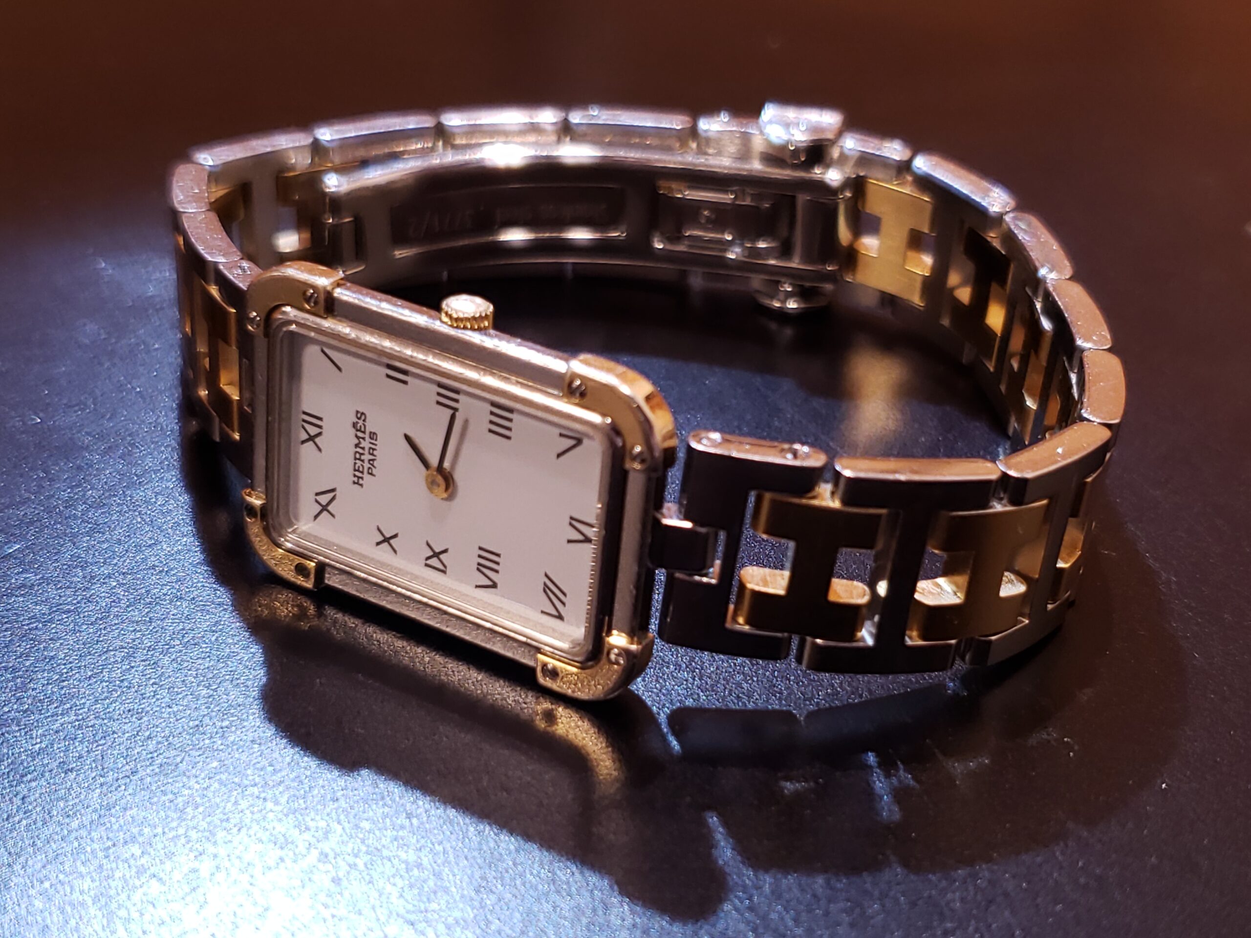 エルメスのお時計でございます。 ネジが長年のご使用で緩み、1本欠損していました。