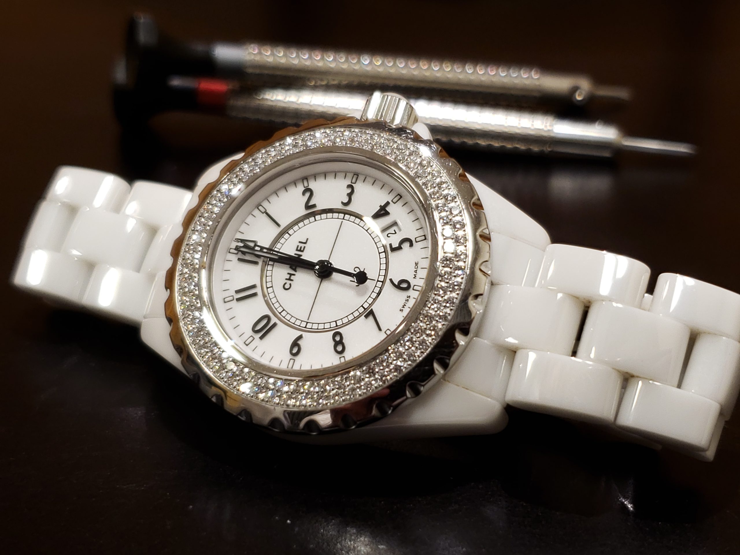 シャネル J12でございます。 こちらは電池交換のためお預かり致しました。