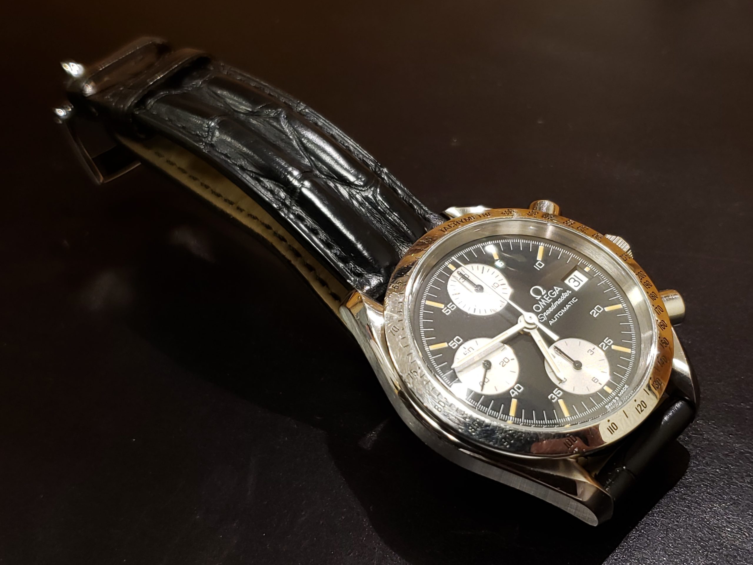 オメガ スピードマスターでございます。 ご購入25年程のお品で、遅れの症状でお預かり致しました。
