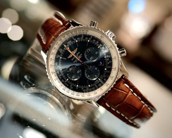 ブライトリングの機械式時計をお持ち込みいただきました。 クロノグラフ針のオレンジ色が映えていて素敵です。 心を込めて作業させていただきますので今しばらくお待ちくださいませ。