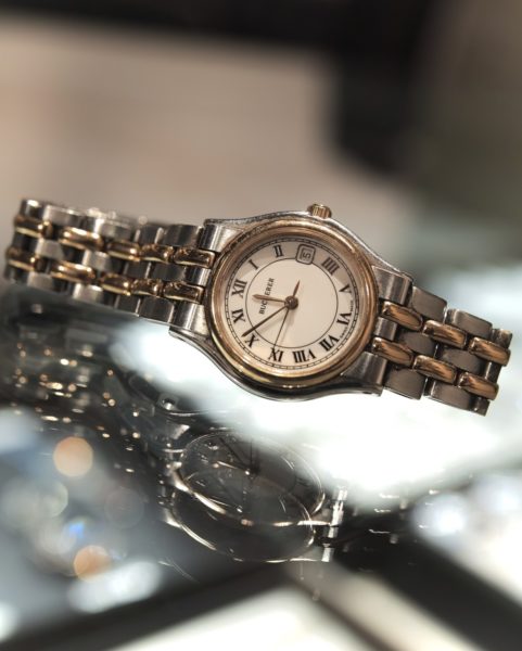 BUCHERERの時計をお持ち込みいただきました。 小ぶりながら存在感があり、ベルトの曲線がエレガントな時計です。 心を込めて作業させていただきますので今しばらくお待ちくださいませ。