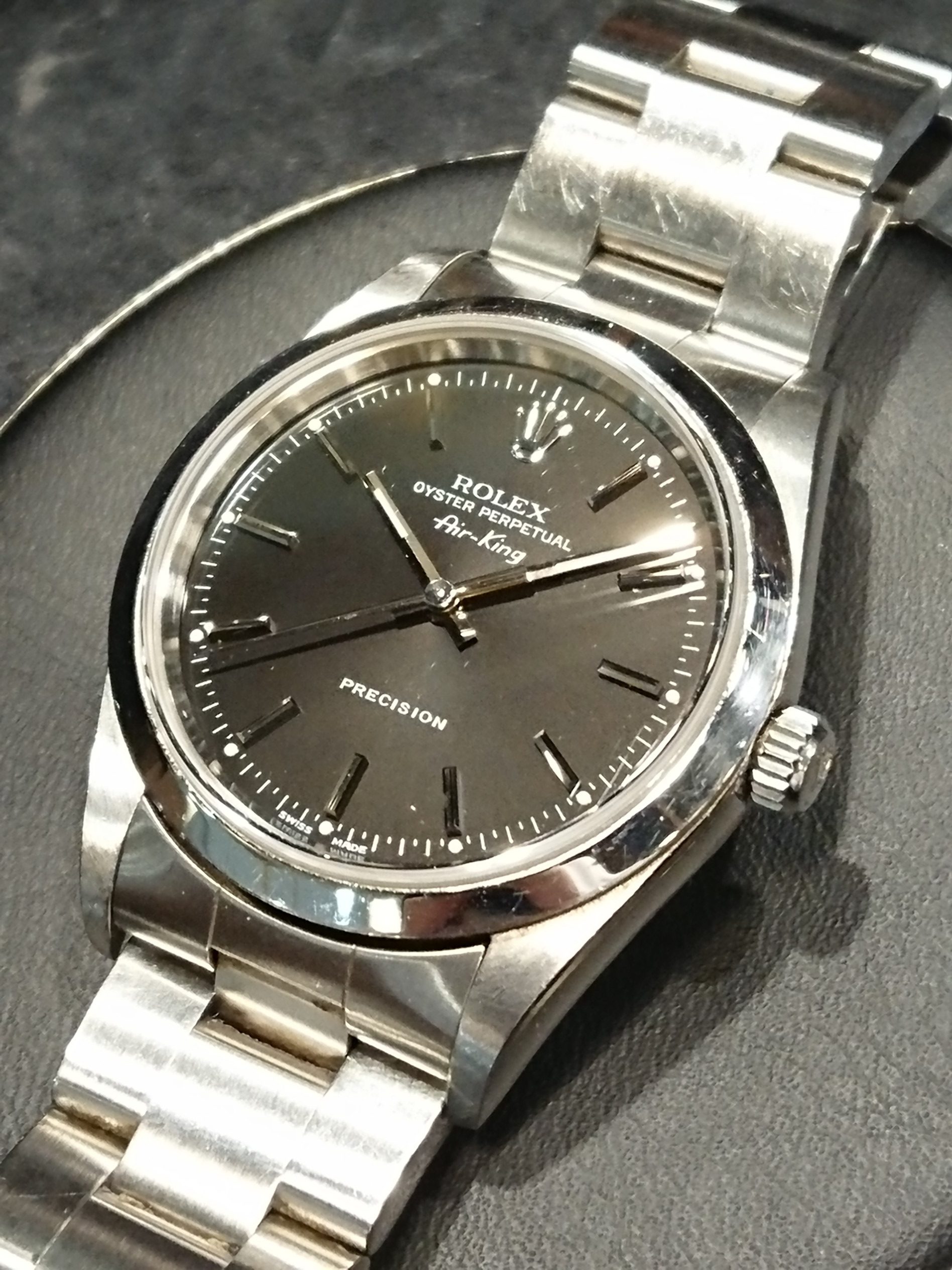 ロレックスの中でも、ノンデイトのシンプルな作りのエアキング。 マイナーチェンジを繰り返しながらも不変の定番デザインともいえ、現在からするとやや小振りなサイズもスタイリッシュですね。 こちらは、クロノメーターを取得する以前のモデルです。