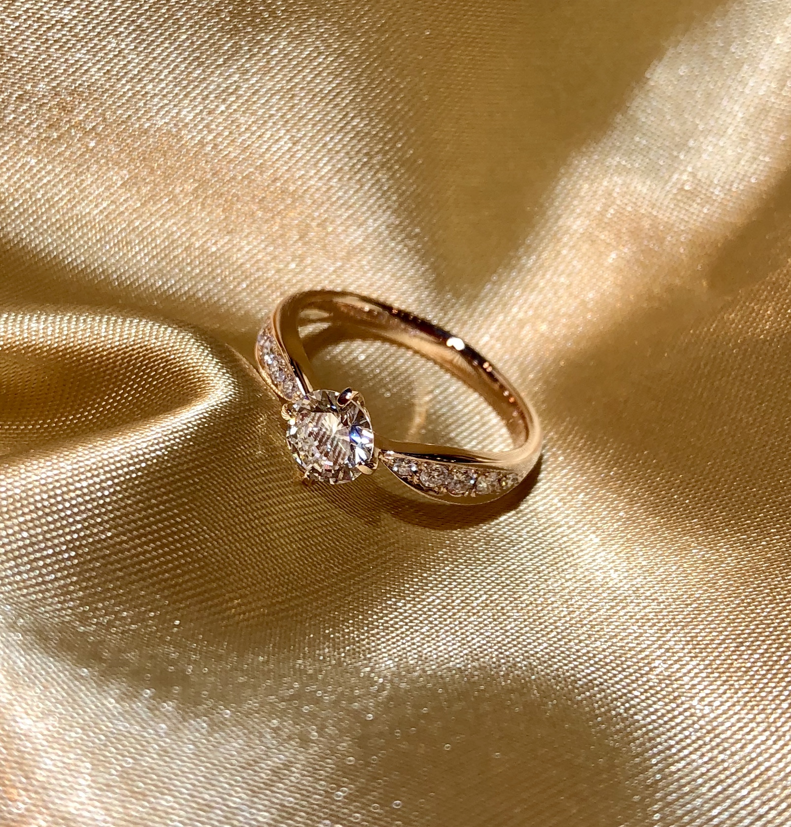 ジュエリーリフォームシリーズ第3弾です。 今回も①同様、ダイアモンドのソリテールリングを現代風にお仕立て直しをさせていただきました。地金もピンクゴールドでとても華やかでかわいらしいお品になりました。