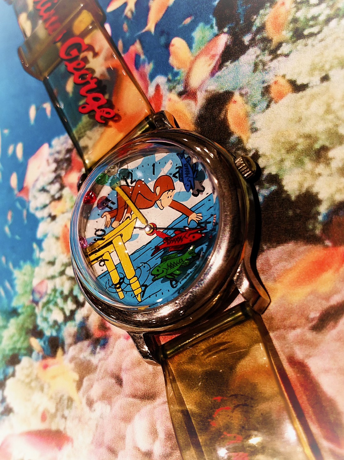 おさるのジョージの腕時計をお持ち込みいただきました。 おさるのジョージは『ひとまねこざる』というハンス・アウグスト・レイとマーグレット・レイの夫妻による絵本のシリーズを原案にされた絵本で、ジョージの名前も最初はじょーじとひらがな表記だったそうです。
