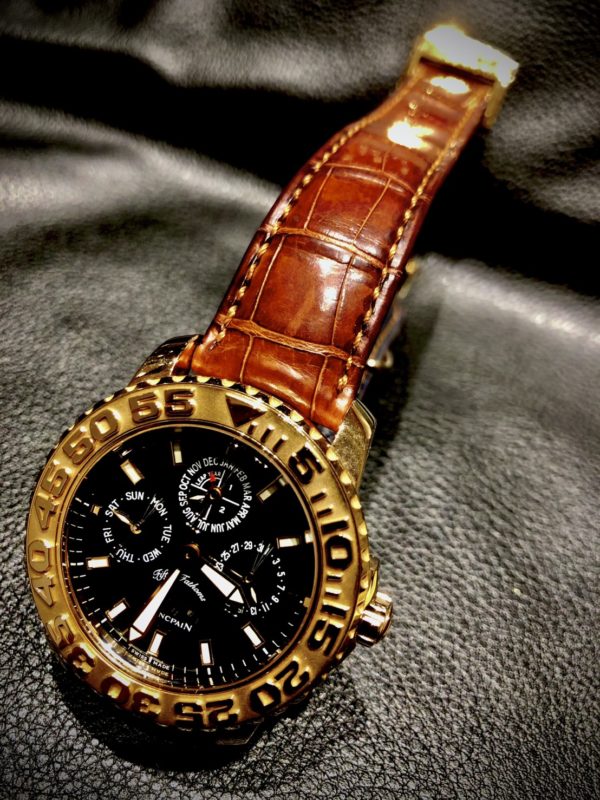 ブランパンのフィフティファゾムスをお預かりしました。 こちらは1953年にダイバーズウォッチを製作した時から、ブランパンが持ち続ける海の世界へ純粋な情熱を具現化されている時計です。