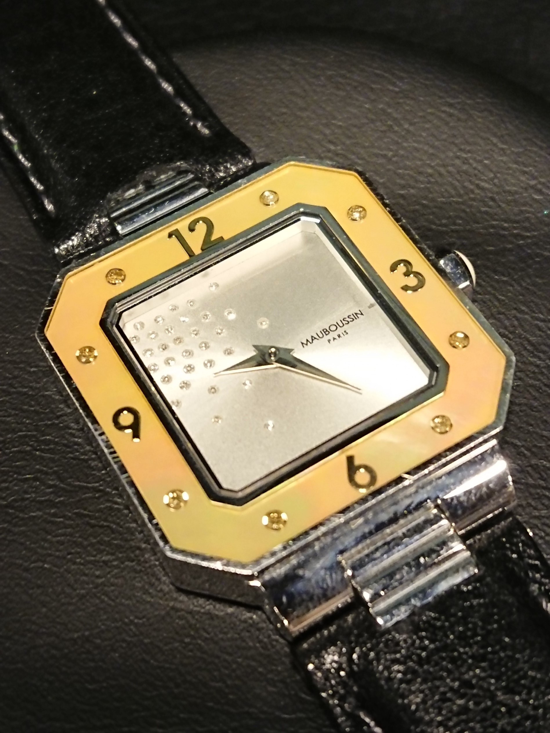 “グランサンク”と言われる、ジュエリーの頂点とされるブランドの一つです。さすがはジュエリーブランドのモデル、絶妙なバランスでセッティングされた文字板のダイヤモンドが実に瀟洒ですね。ベゼルのシェルも目を惹き、時刻の確認そのものが楽しくなってしまうようなモデルです。