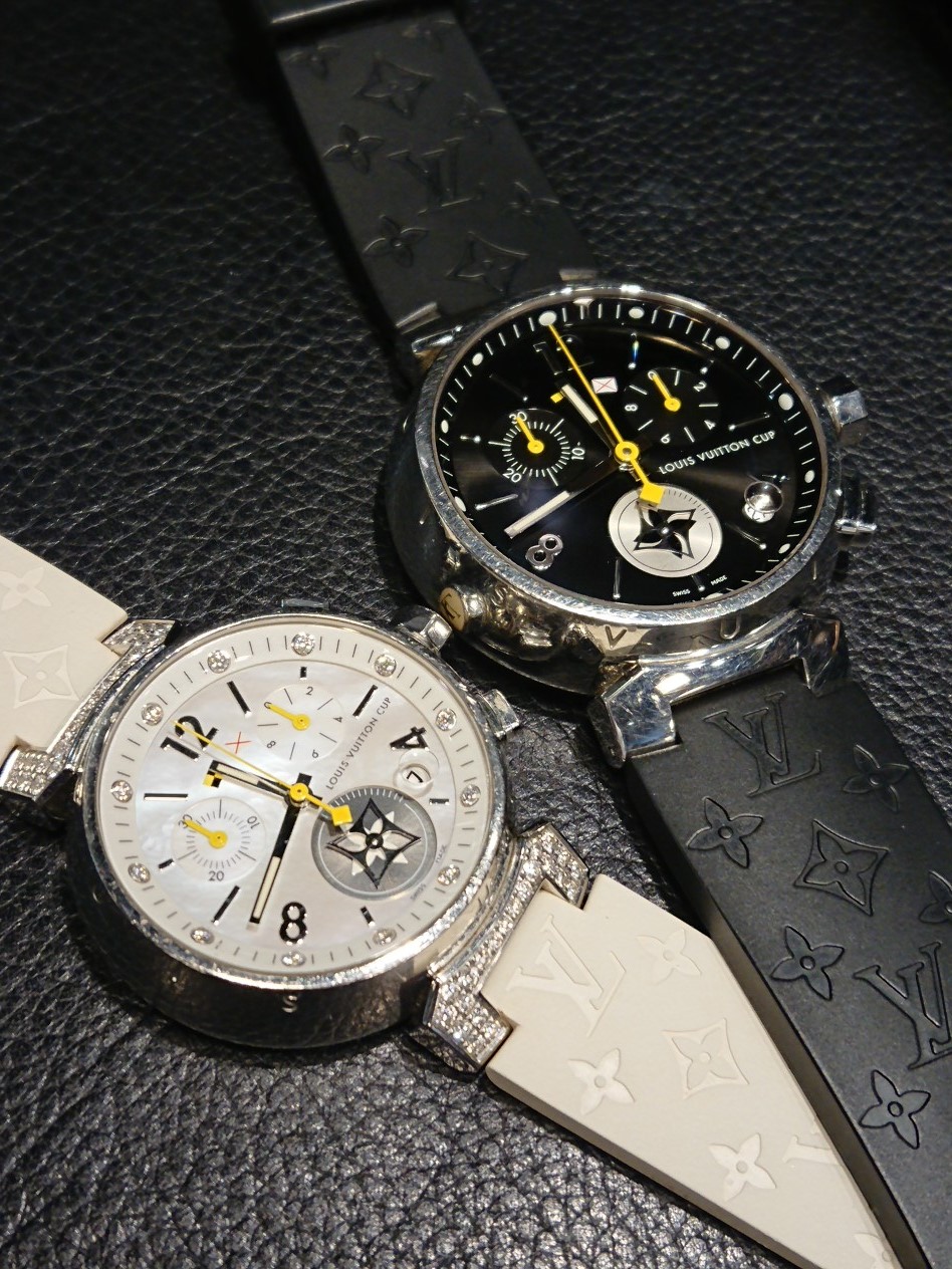 “樽”をイメージしたモデル、タンブール。ルイヴィトンのアイコン的存在となったこちらのシリーズ。 ご夫婦で、ペアでのご愛用。何ともほほえましくも有り、フランス発のブランド特有の実に瀟洒な仕上がりにもなっております。