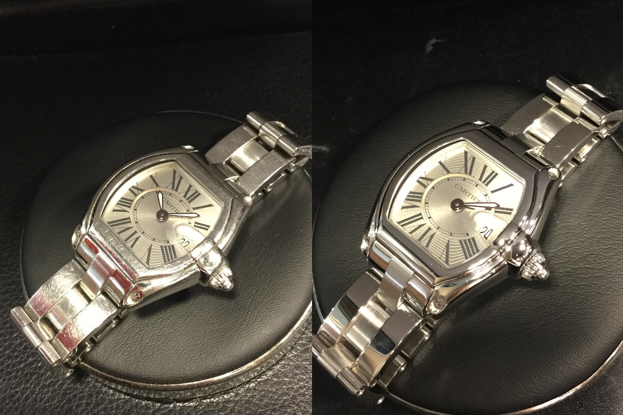 カルティエの人気モデル、ロードスター。独特のアールデコ調のデザインが秀逸ですね。メタルバンド・モデルはややもすれば武骨になりがちですが、さすが「宝石商の王、王の宝石商」と言われるカルティエ。極めて洒脱なデザインに仕上がっております。