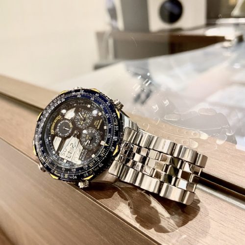 今回お預りしたお時計は、シチズン プロマスターナビホークの多機能性が魅力です。陸・海・空あらゆるフィールドで最大のパフォーマンスを発揮する為に誕生した本格スポーツウォッチです。