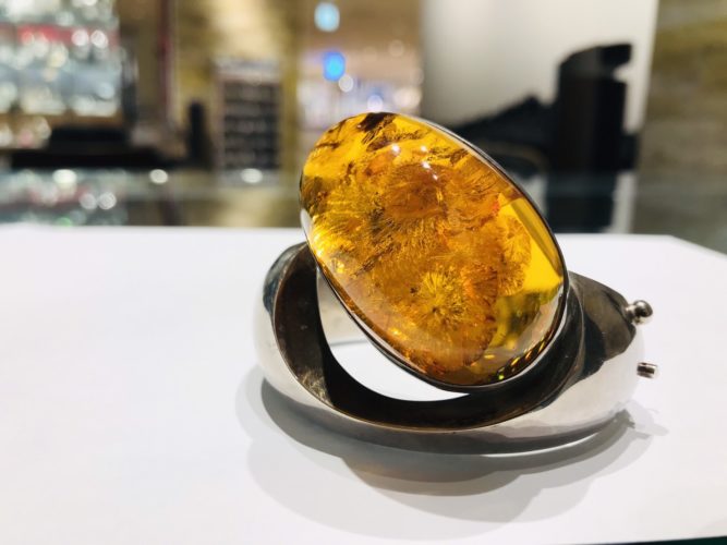 今回お預り致しましたのは、美しいお色味の大きい石が付いたブレスレットです。