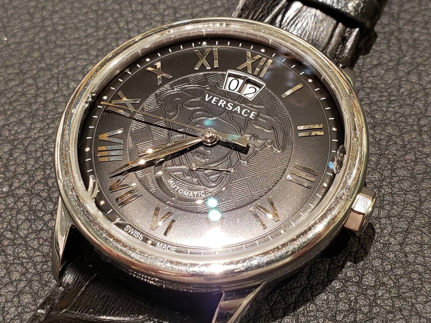 ヴェルサーチェの時計でございます。 ヴェルサーチェは1978年にイタリアのミラノで第1号店がオープンしたのが始まりです。 ヴェルサーチェの時計は、クラシカルとモダンが融合したデザインとなっており、イタリアのオシャレなファッションを時計でも楽しめます! こちらは遅れの症状でお預かり致しました。