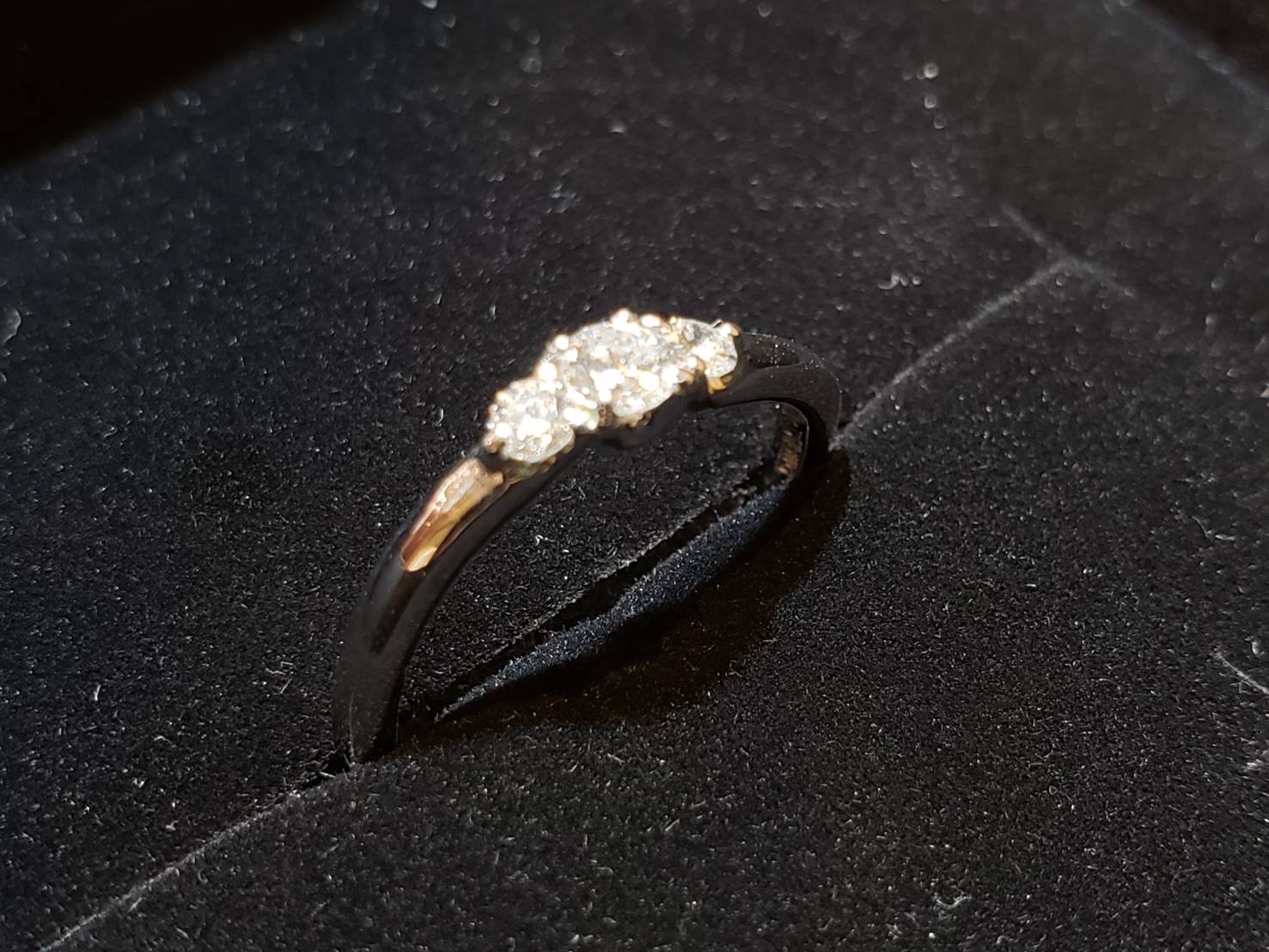 こちらは中心の石が外れてしまっていて石留めが必要な状態でした。 同時にサイズ直し、新品仕上げもさせて頂き、綺麗に直ったと、とても感動して頂きました!