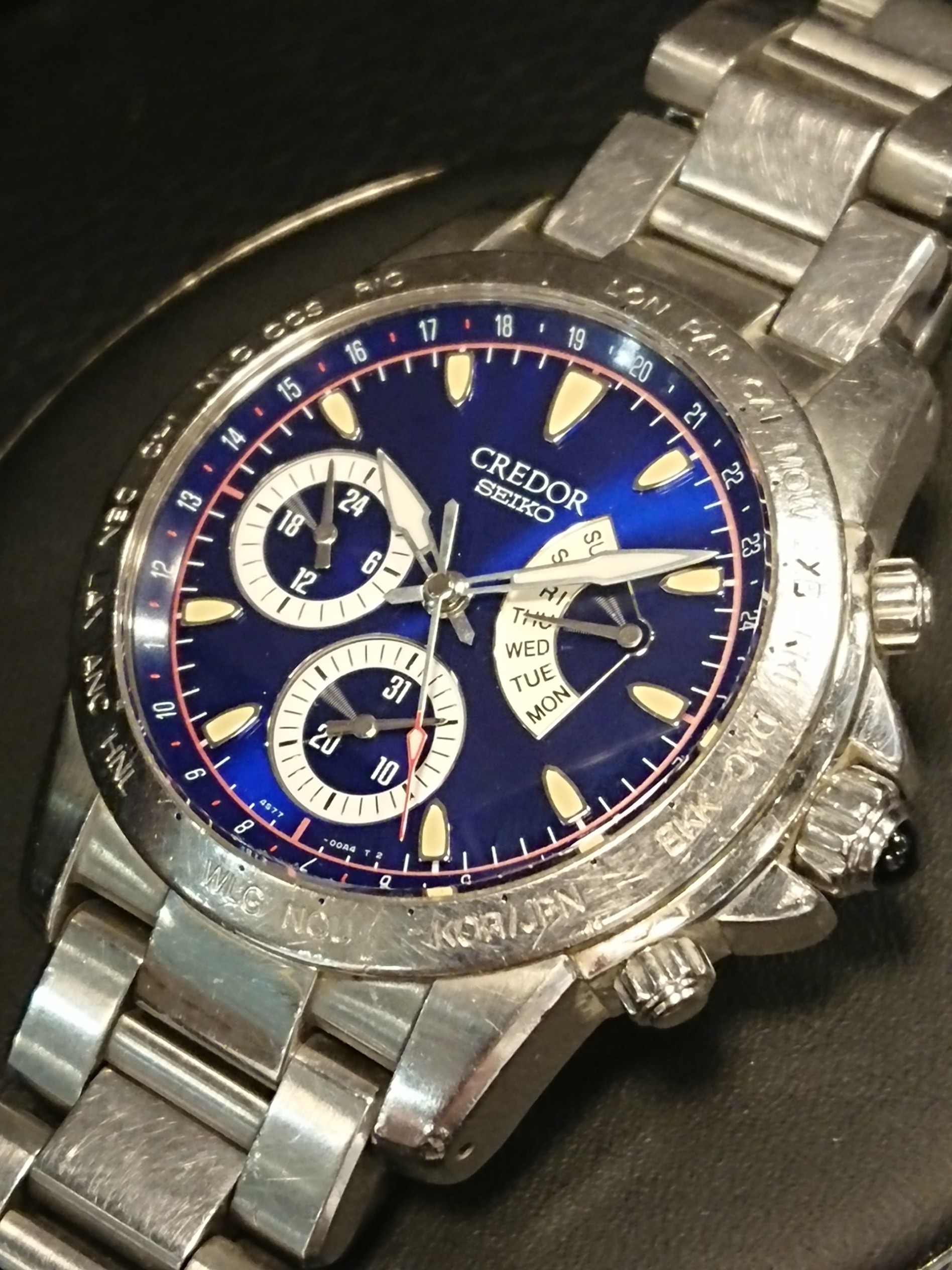 2002年に限定500本で生産されたモデルです。文字板は、言わずと知れた“サムライブルー”、独特の針配置と相俟って、実に美しいデザインとなっております。