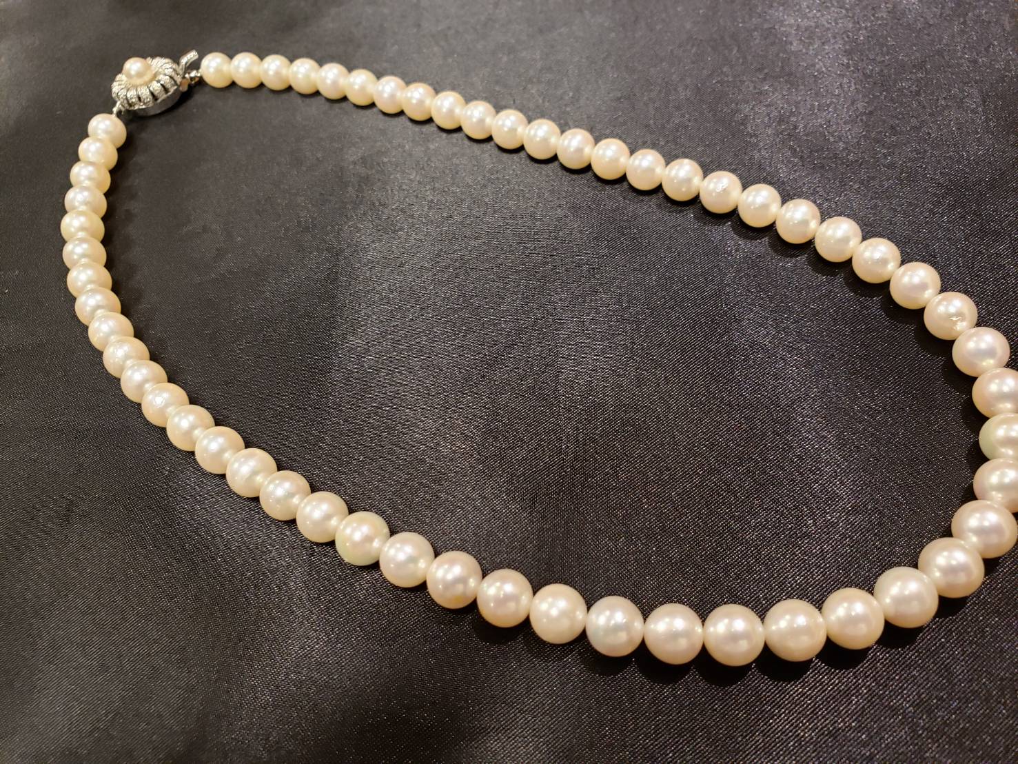 ネックレスの糸替えです。 当店では耐久性に優れ、糸と変わらない使用感のワイヤーを使用していますので、長くお使いいただけます! 糸がちぎれてしまった、伸びてきたなど感じられましたら、当店までご相談下さい!