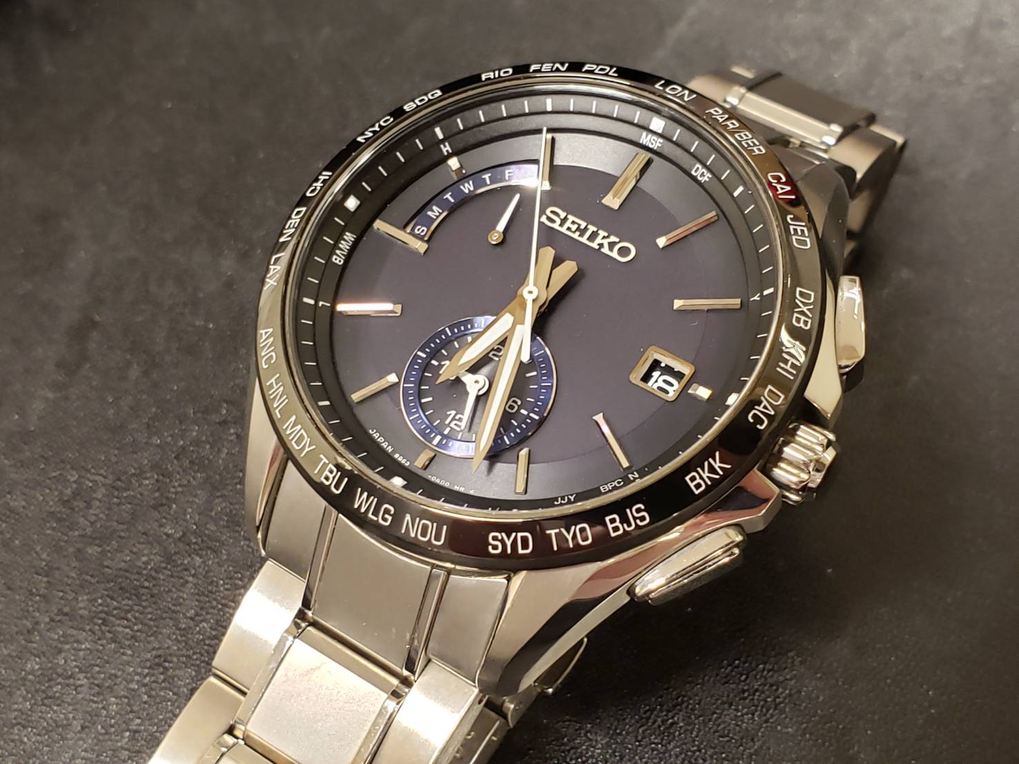 セイコー ソーラー時計でございます。 こちらはバンドのピンが抜けやすくなっており、全ピン点検でお預かり致しました。 長年ご使用されていると、ピンの摩耗や汗、水による腐食によりピンが抜けてしまうことがあります。 最悪の場合着けているときにポロっと落ちてしまうこともありますので、そうなる前に一度ご相談下さいませ!