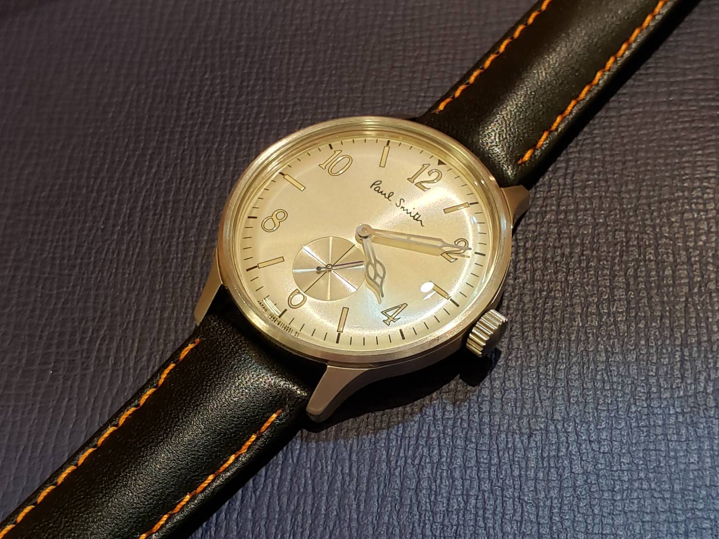 ポールスミスでございます。 こちらは金属製のバンドが元々ついていたのですが、コマが壊れてしまって使えない状態となっていました。 修理が高額になる状態でしたので、革バンドに付け替えることをお選びいただきました!