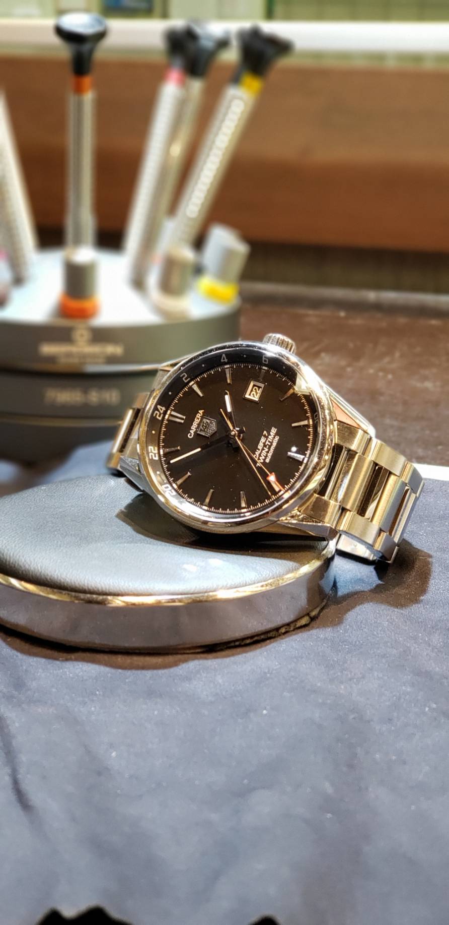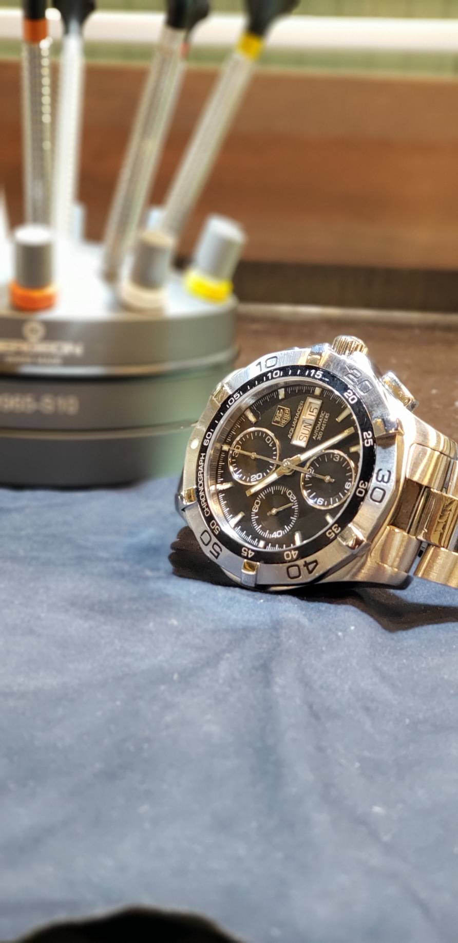 ■枚方店「タグホイヤー アクアレーサー 分解掃除および研磨」