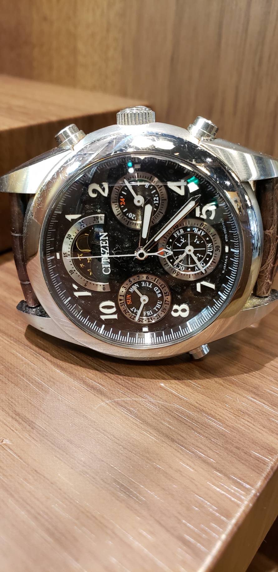 カンパノラのグランドコンプリケーションを電池交換いたしました。グランドコンプリケーションとは、ミニッツリピーター、ムーンフェイズ、パーペチュアルカレンダー、クロノグラフの4大複雑機構を搭載する時計のことです。電池交換後、綺麗な音で時刻を教えてくれています♪