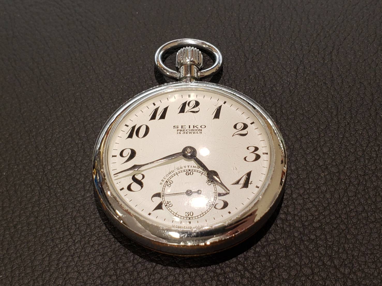 19セイコーでございます。 かつて国鉄で正式採用されていた、セイコーの歴史においても重要な時計です。 大型のテンプにしっかりとした造りで、高精度が求められる鉄道時計に十分な性能を持っています。 こちらは内部錆が見受けられましたが、しっかりと清掃してあげると元気に動き出してくれました。