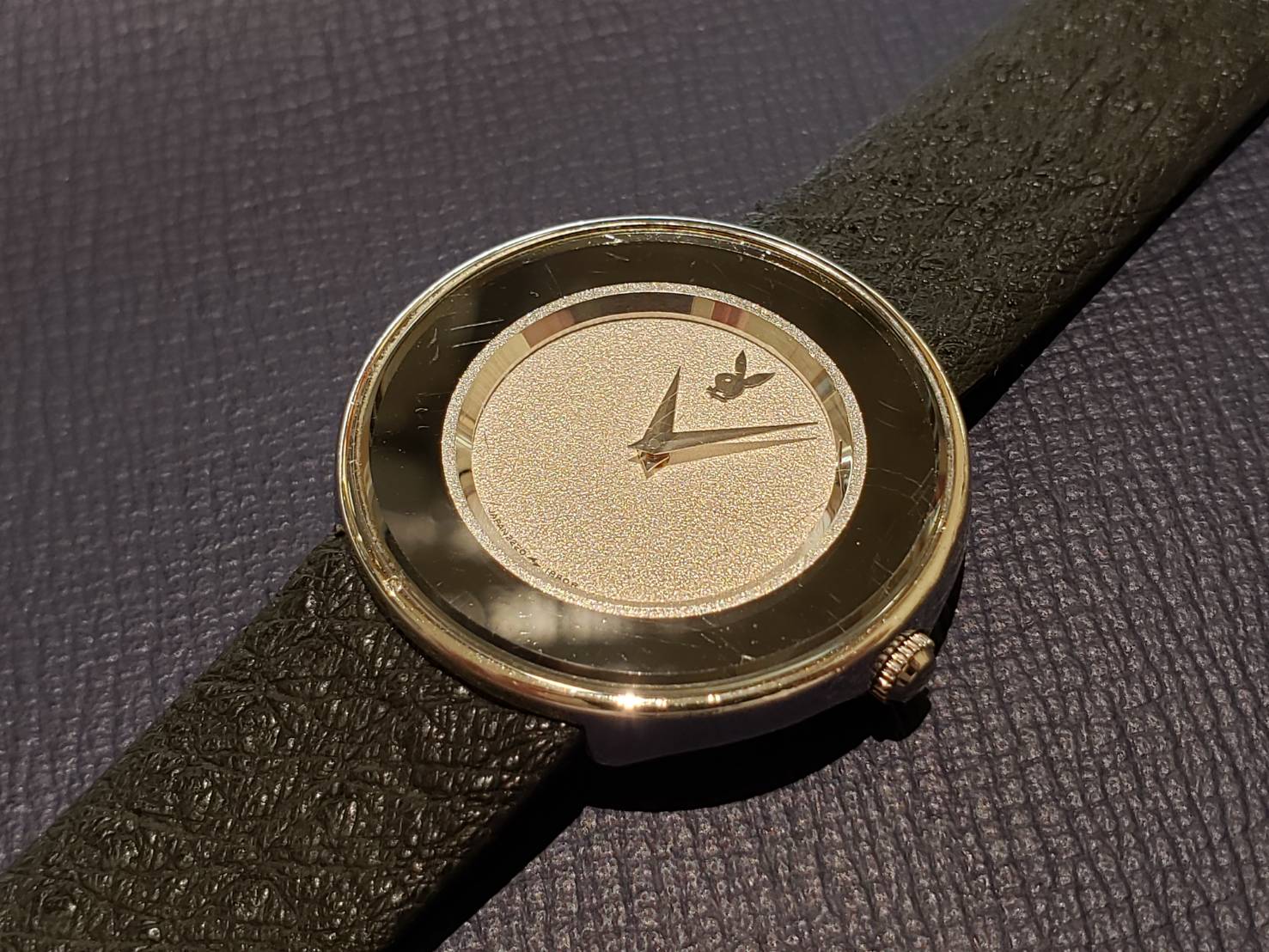 この度オーバーホールでお預かり致しましたお品物は、セイコーのPLAYBOYモデルでございます。 お調べしたところ雑誌のPLAYBOY日本版の刊行間もない頃から少しだけ作られていたモデルだそうです。 文字盤外周が鏡のようになっており、とてもシンプルなデザインでオシャレですね。 ムーブメントはセイコーのシャリオにも搭載されていた物でしっかりした作りの良い機械です。 こちらはお客様がおじ様から譲り受けられたお品だそうです。 ご使用される前のメンテナンスとしてお預かりいたしました。
