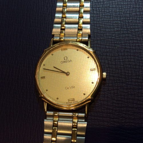 この度お預かりいたしました時計は、オメガのデビルでございます。 2針タイプの薄型で、金色と銀色がとてもオシャレです。 今回、文字盤がズレてしまったとのことでお持ち込みいただきました。