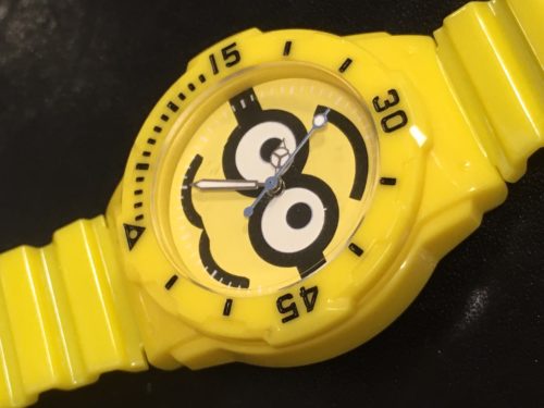 この度お預かり致しました時計は、キャラクター腕時計でございます。 とちらの時計は娘さんの時計で、一緒にご来店頂きました。とてもかわいらしい時計ですね。