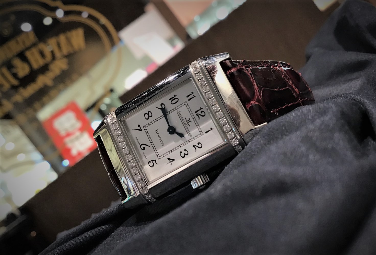 ベゼルの上下にあしらわれたダイヤが煌びやかに彩る、 ジャガー・ルクルトのレベルソ、レディースモデルです。 ジャガー・ルクルト自体がフォーマル性の高いブランドですが、 ラフな装いにサラッと着用するのも見栄えが良いと思います。 さて、今回は電池交換のご依頼でお預かり致しましたが、 長くメンテナンスをされていないようです。 不調が発生してしまう前に、オーバーホールをご検討いただけたらと思います。