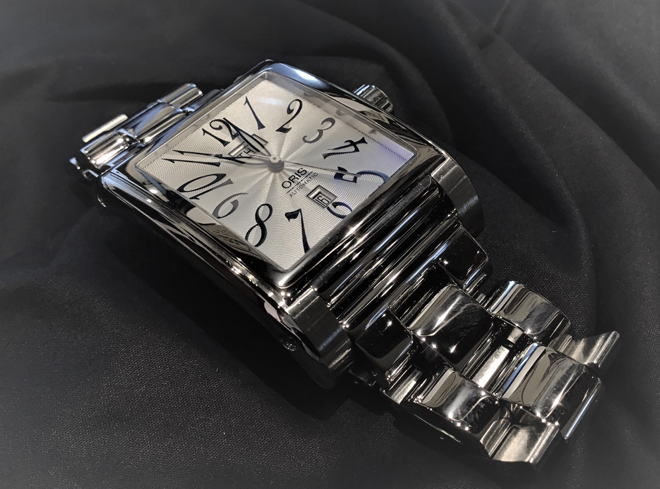 前回ご紹介させていただきましたオリスとは別タイプの、 丸型ケースのポインターデイトモデルとなります。 通常のデイト機能を持つ時計は、文字板上の小窓から表示されていることが多いですが、 名前の由来となっているポインターデイトとは、日付針が数字を指す機能を言います。 ”メカ”らしさを持つこの機能は人気があり、多くのブランドでも使用されています。