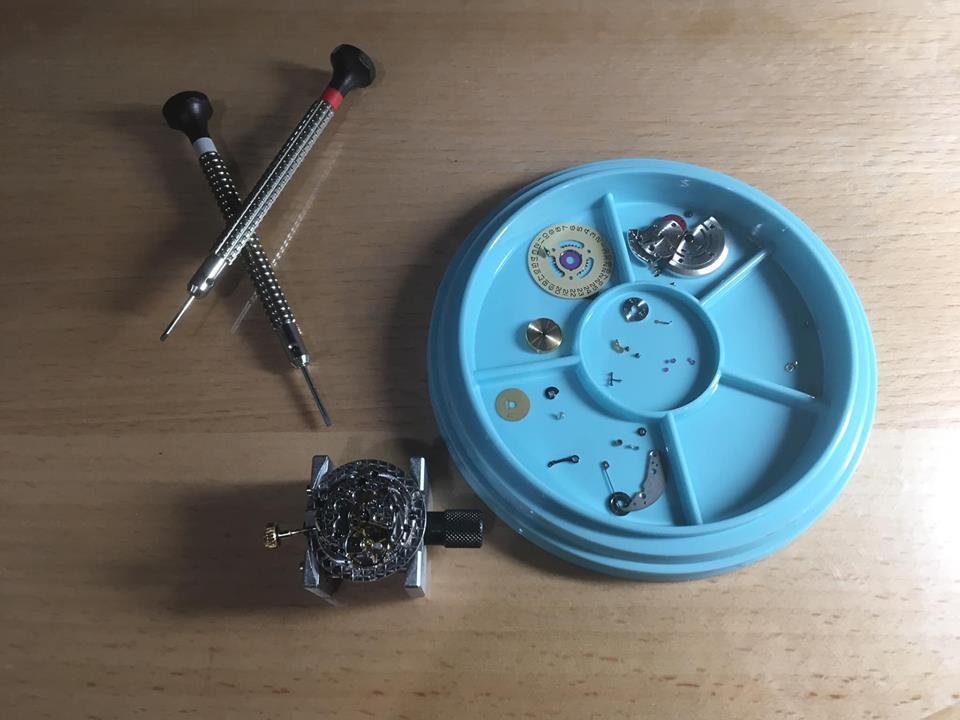 裏蓋のネジもひとつとれてしまっています。 形が通常のネジとは違うので工具から作る必要があります。