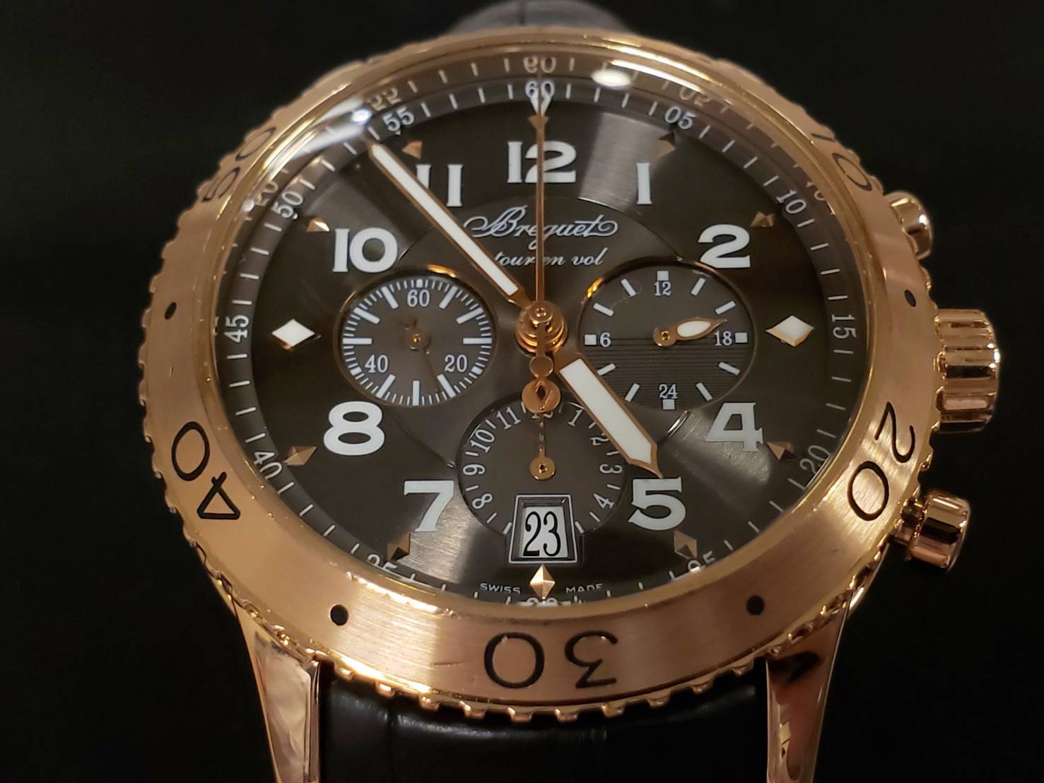 ブレゲのタイプXXIでございます。 かの有名なアブラアン=ルイ・ブレゲが設立した時計メーカーで、雲上と言われ時計好きなら誰もが憧れるようなブランドです。 タイプXXシリーズはパイロットウォッチとして製作されたのが始まりで、1980年代初頭までフランス空軍の装備として使われていたそうです。 こちらは特にお気に入りの時計だそうで、研磨のご依頼もいただきました。
