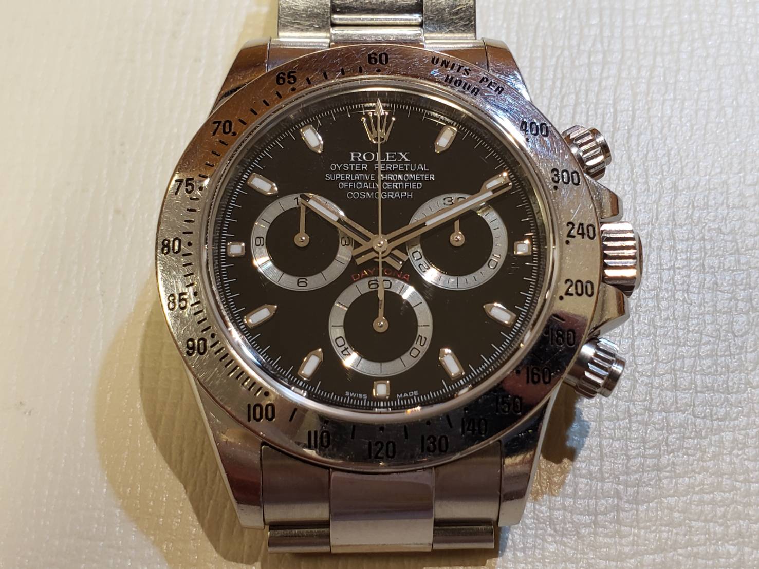 ROLEXのデイトナでございます。 圧倒的な人気を誇り、手に入れたくても入らないというほど有名なモデルです。 こちらはお預かり時リュウズが空回りし、リセットボタンが外れている状態でした。