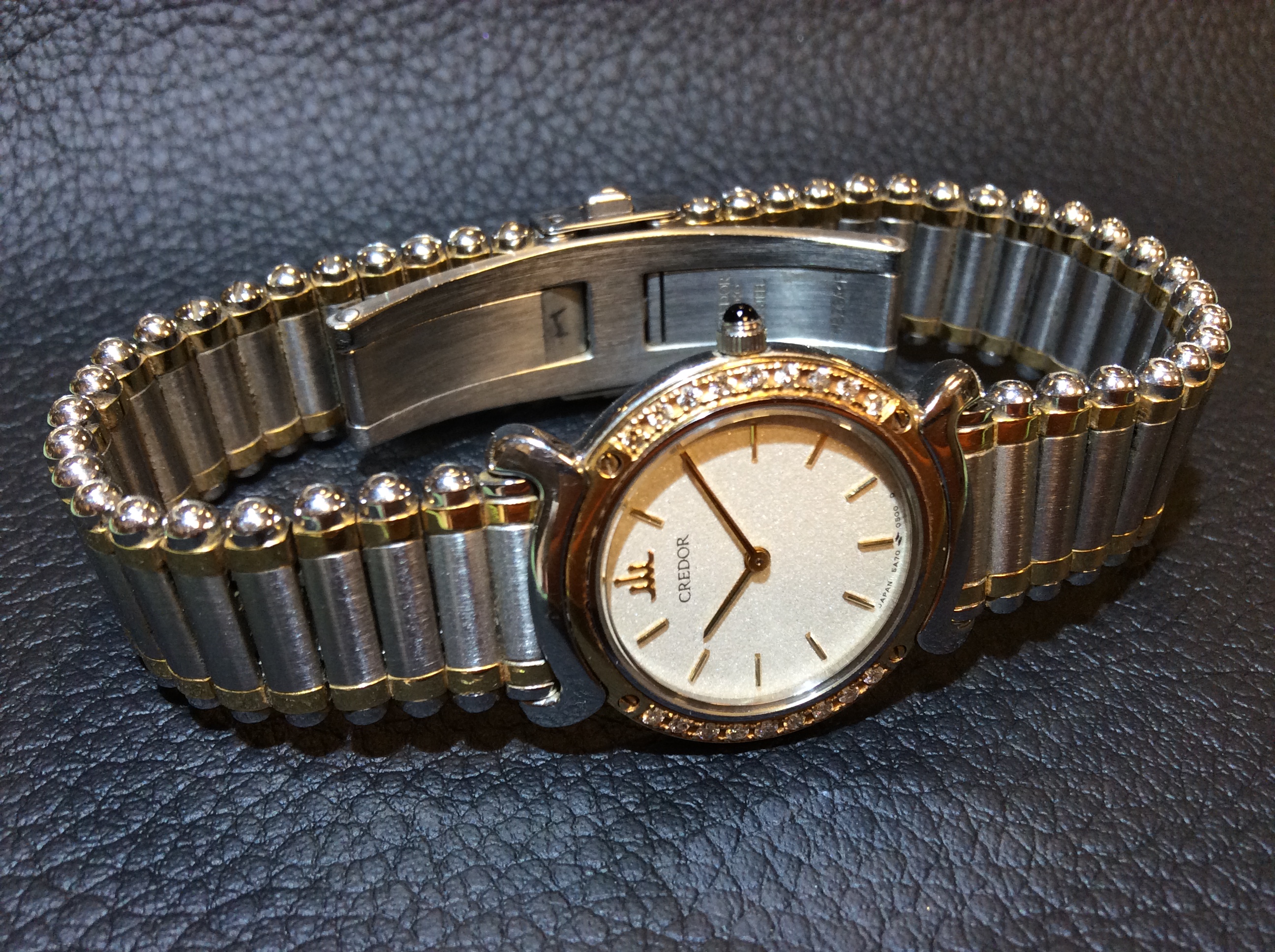 今は亡きお姉さまの遺品だそうで、海外旅行に行ってはブランド品をよくご購入されていたとのこと。 お知り合いには、モデルの方がたくさんいらっしゃって、皆様口を揃えて「その時計欲しいなぁ~」と羨ましがられていたようです。 妹様は、受け継いでからもしばらく放置していたり、手荒く扱っていたとのことで、ある日突然ゼンマイが切れリューズ操作も利かなくなってしまったそうです。