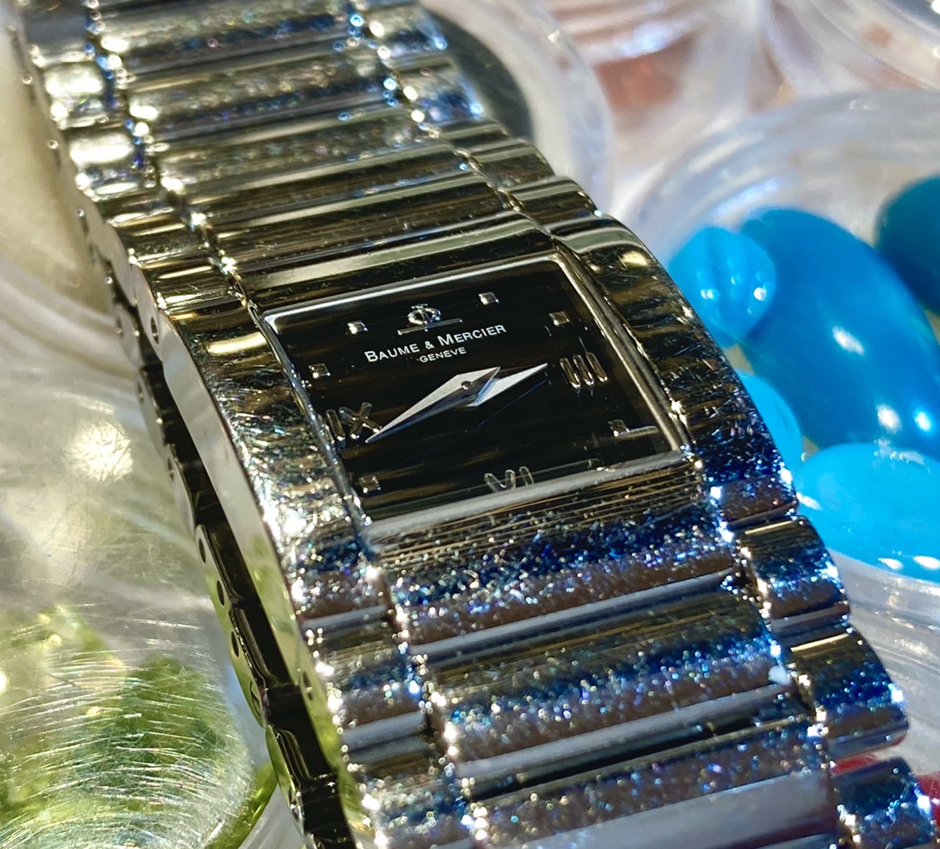 Anne Coquineの時計をガラス交換でお預かり致しました。 揺れに合わせて文字盤がくるくると回るデザインが特徴的ですね。