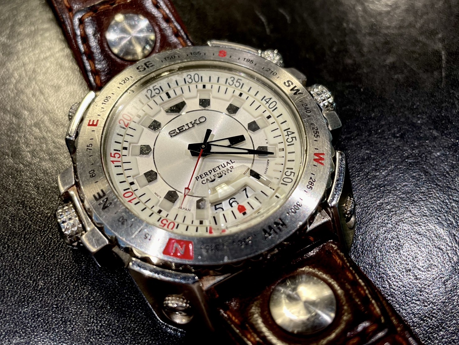 今回セイコーのパーペチュアル機能つきの腕時計を電池交換でお預かりしました。