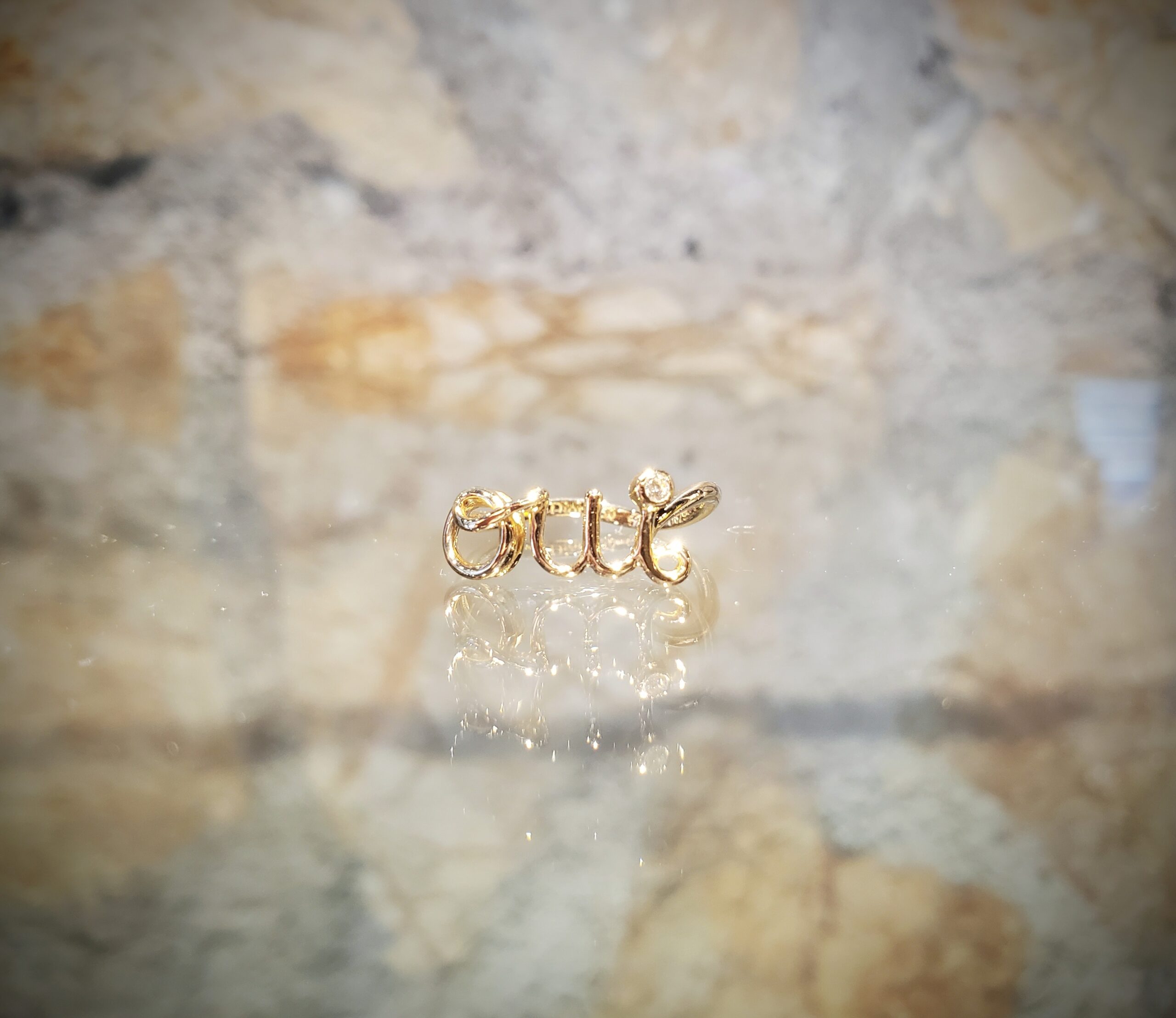 OUIの文字部分の切れてしまった修理と、サイズのお直しを承りました。