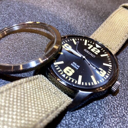 今回、セイコーのソーラー時計のガラス取付を承りました。